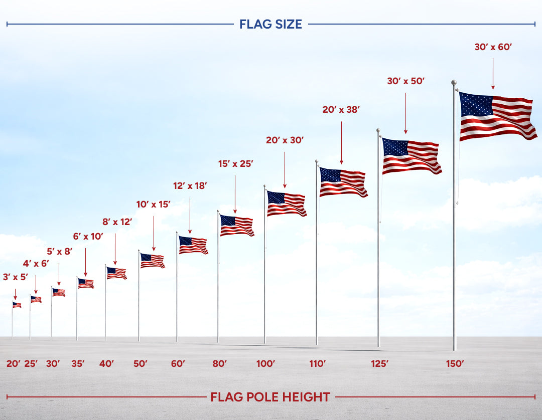 Choosing the right flag size is essential for showcasing the true beauty and honor of our Made in USA flags. Here’s a helpful guide: