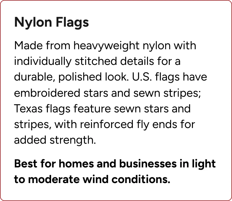 Choose the right material to match your environment and ensure your flag stands tall, season after season.